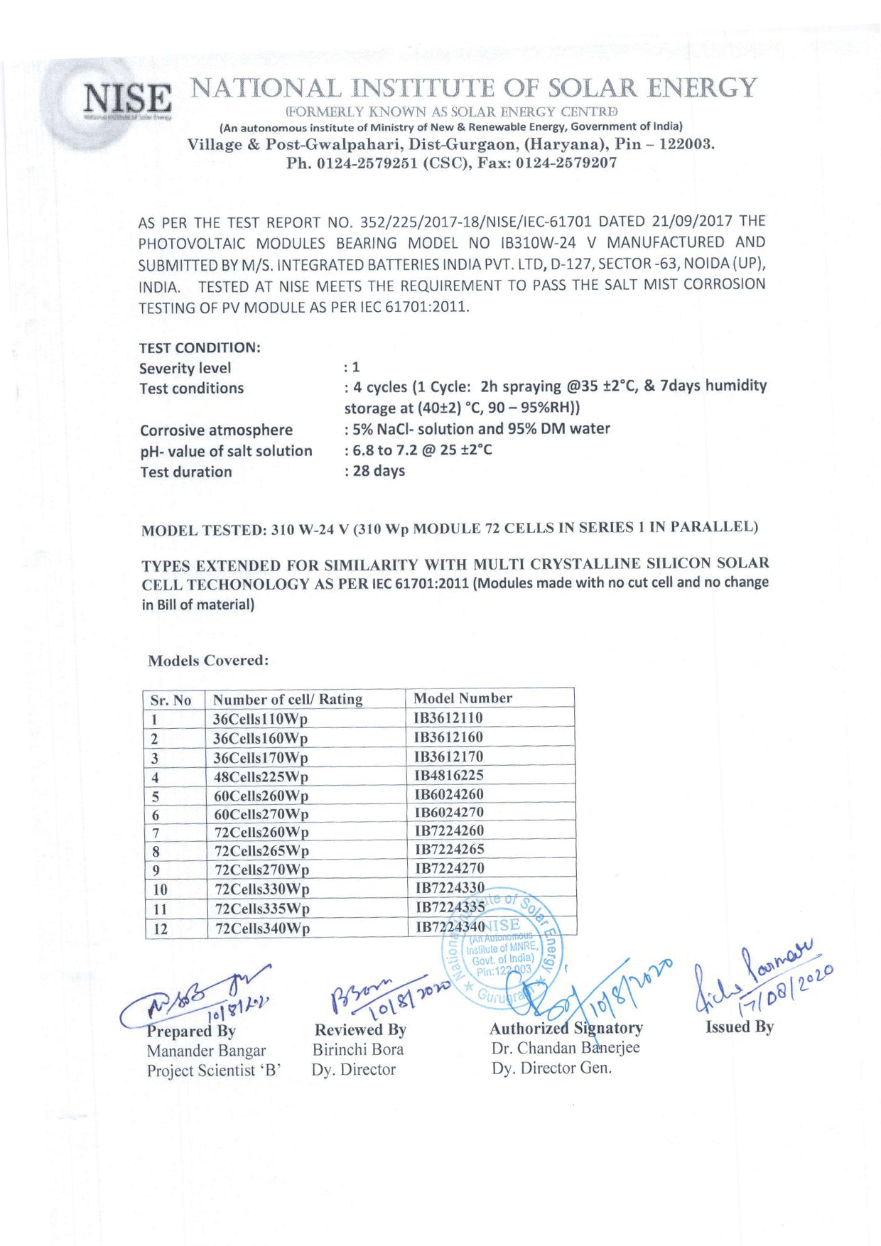IEC 61215&61701 Certificate Corrigendum complete range