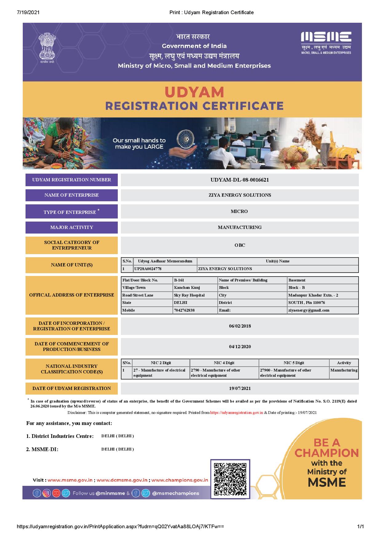 Udyam Registration Certificate