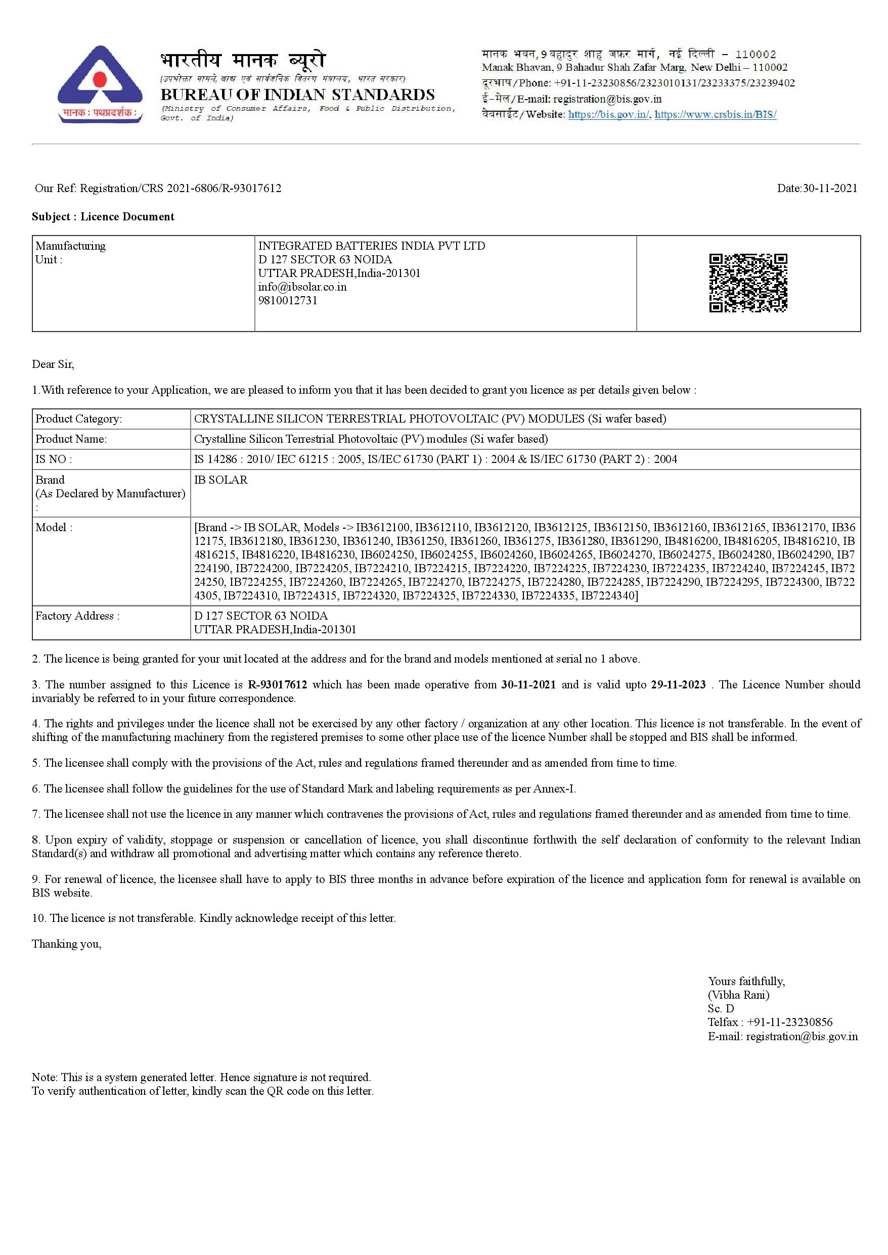 BIS Certificate