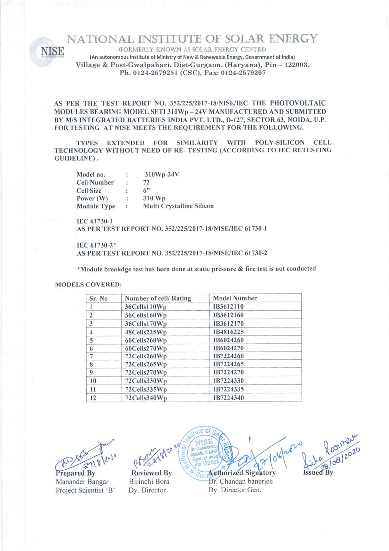 IEC 61215&61701 Certificate Corrigendum complete range